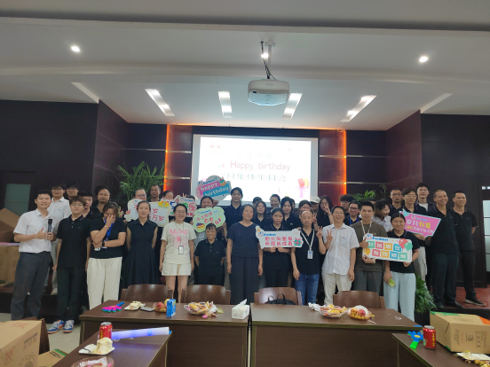 在熱烈似火的七月,我們公司于7月12日為當月壽星們舉辦了一場溫馨難忘的集體生日會。公司精心籌備,準備了品類豐富的爽口零食、新鮮飽滿的水果、清爽解渴的飲料,還有精致美味的蛋糕與飽含心意的禮品,讓每一位員工都能感受到家一般的溫暖。