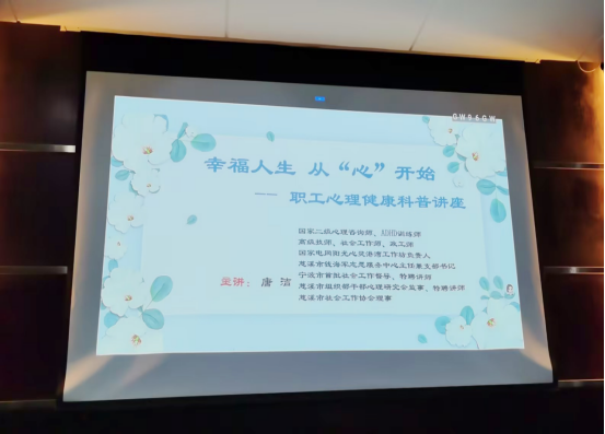 當暮色漸染窗欞,一場關于心靈的滋養之旅悄然開啟。2025年10月28日下午17:30,公司工會特邀慈溪市錢海軍志愿服務中心國家二級心理咨詢師唐潔老師,為職工們帶來“幸福人生 從‘心’開始”心理健康專題講座,用實實在在的關懷為職工撐起“心靈保護傘”。